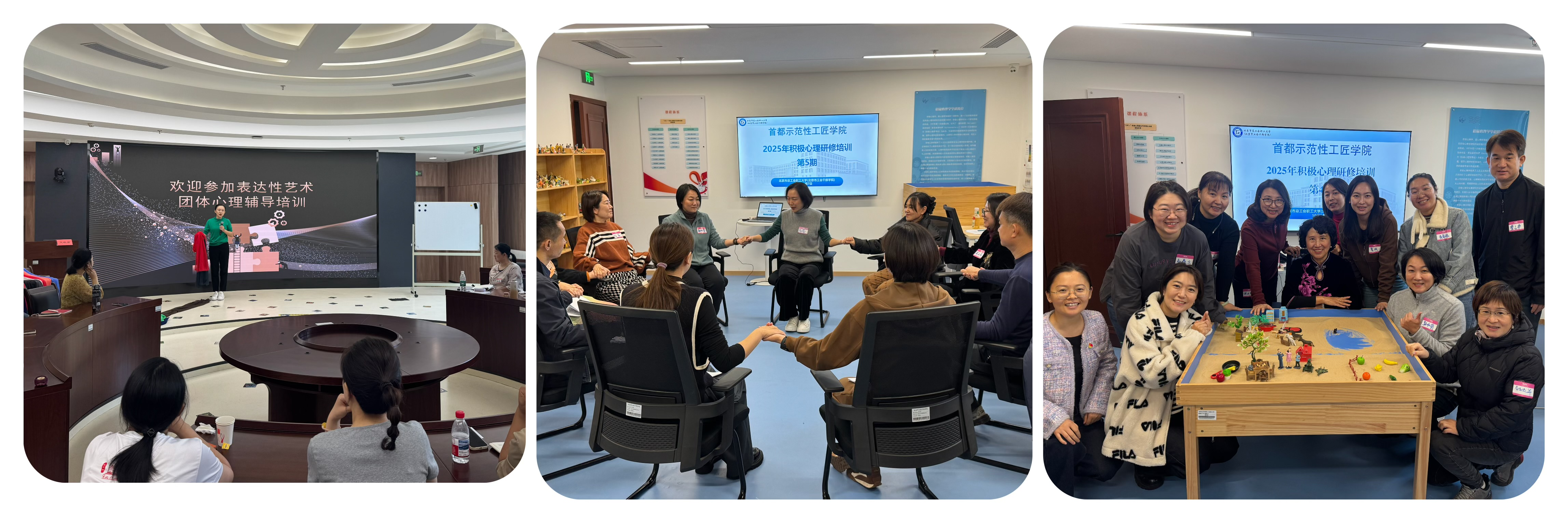 研修培训开展表达性艺术团体心理辅导、心理沙盘等实操技术专题指导,导师针对学员的教学设计与教学案例开展督导。通过“学习-实践-督导-反馈”的培训链条指导学员开发更加贴近企事业单位和职工需求的心理课程。