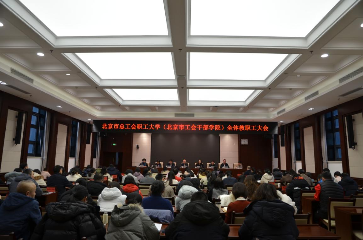1月19日下午,北京市总工会职工大学(北京市工会干部学院)召开全体教职工大会,系统总结2025年工作,谋划2026年发展。会议由党委副书记赵建军主持,全体教职工参加。